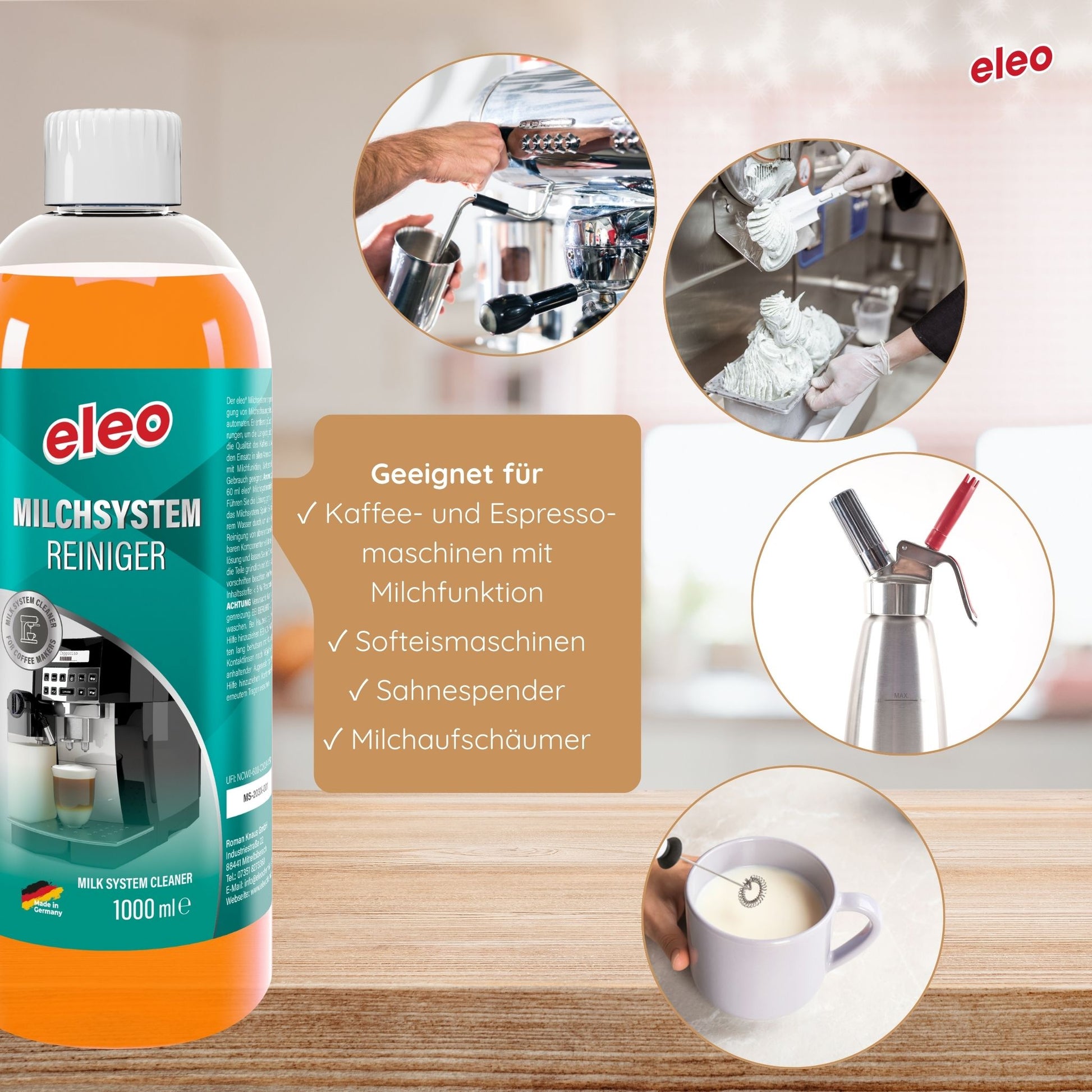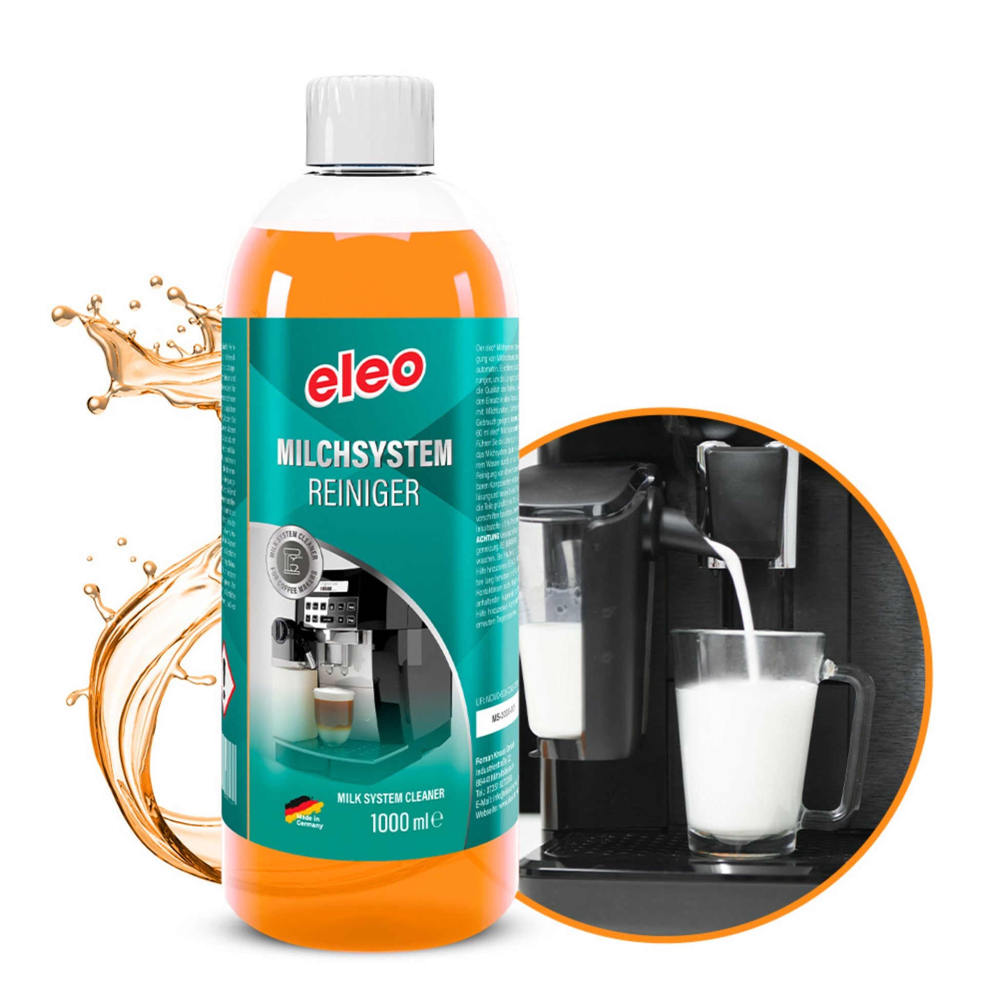 Der eleo® Milchsystemreinigersorgt für hygienische Sauberkeit in Kaffeevollautomaten, Espressomaschinen und Milchschaumgeräten. Er entfernt zuverlässig Milchrückstände, Fette und Bakterien in Milchleitungen und Aufschäumdüsen – für langanhaltenden, cremigen Milchschaum und besten Kaffeegenuss.