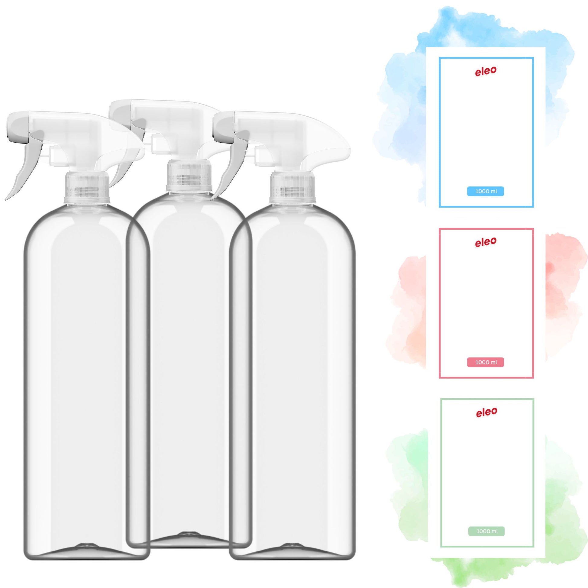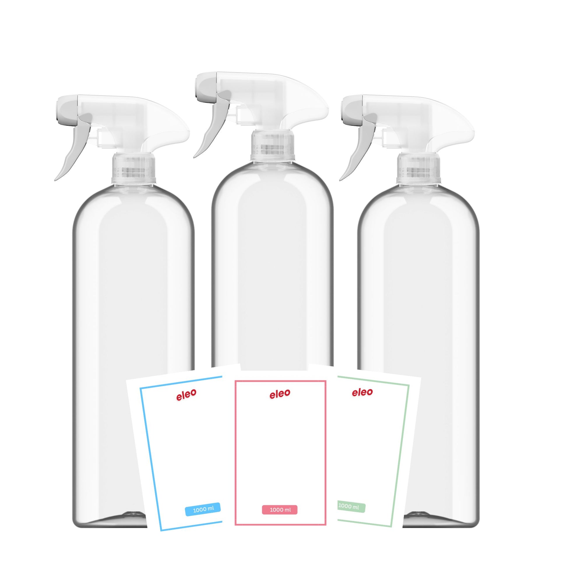 Die eleo® Mixflaschen im praktischen 3er Set (je 1000 ml) sind die perfekte Lösung, um Konzentrate anzumischen und deine Reiniger sauber abzufüllen. Hergestellt aus hochwertigem PET, sind sie transparent, robust und langlebig. Mit den drei mitgelieferten, wiederbeschreibbaren Aufklebern behältst du jederzeit den Überblick, welcher Reiniger sich in welcher Flasche befindet.